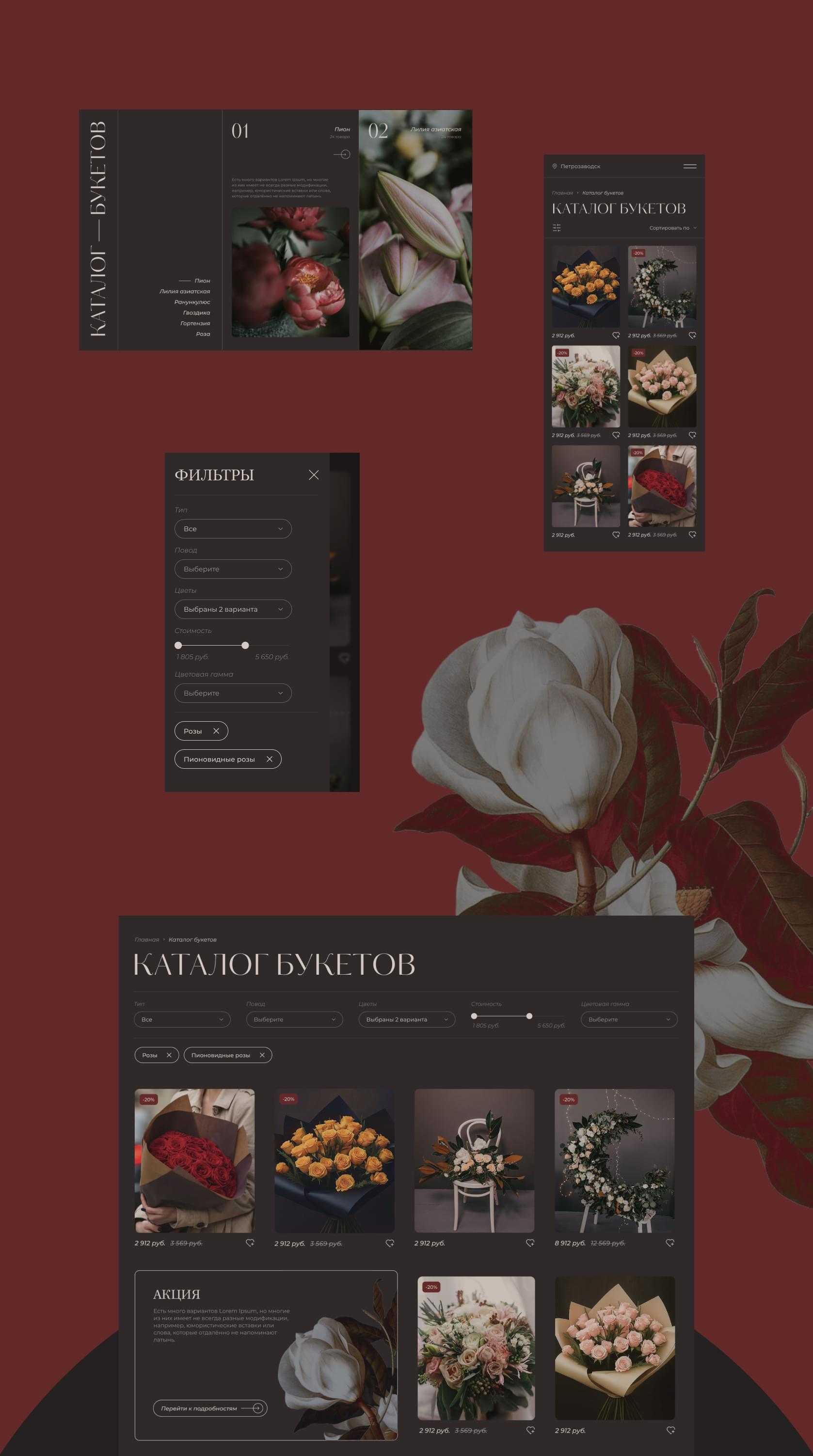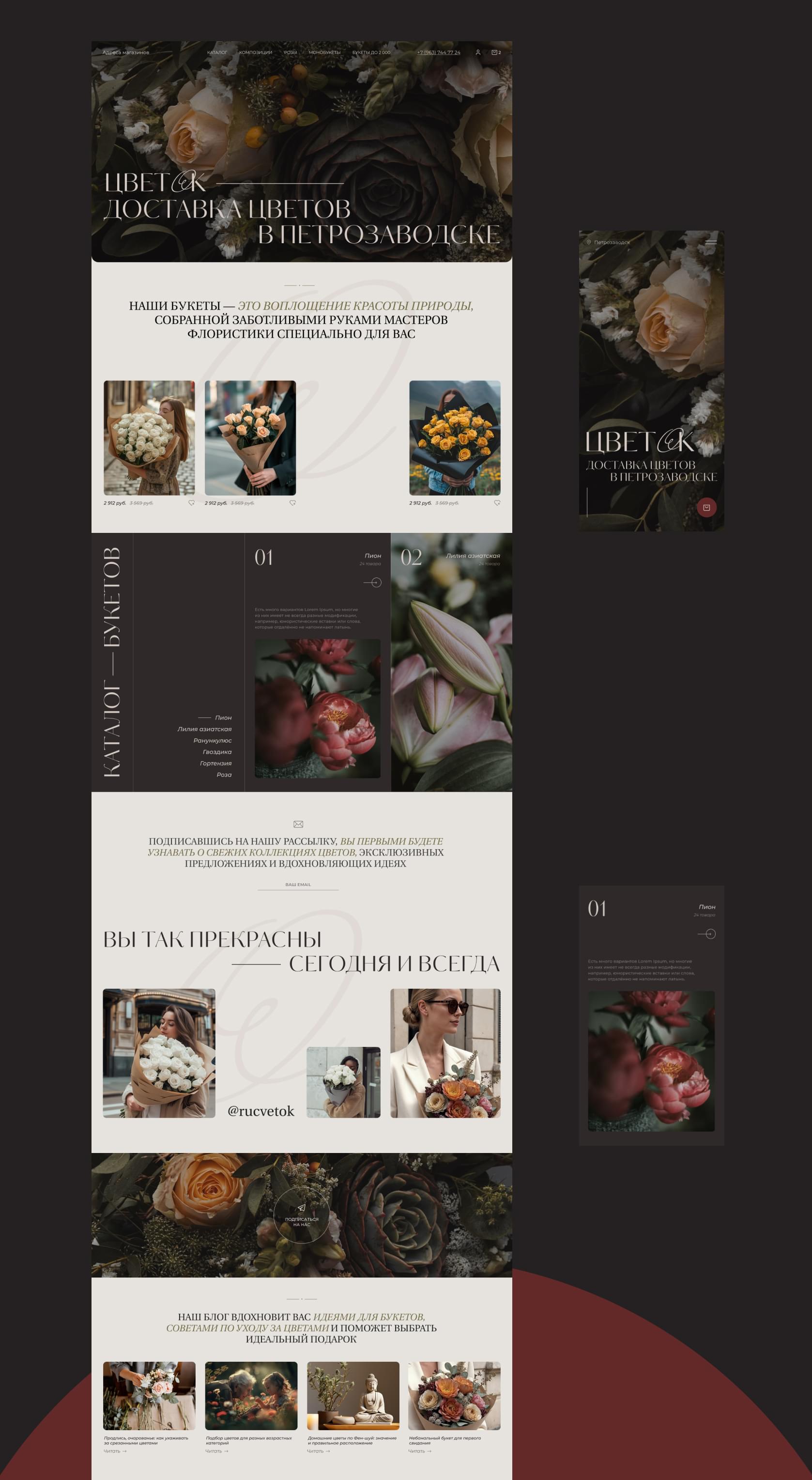 ЦветʼOk — магазин флористики из Петрозаводска. Задачей проекта было обновить бренд, а также в новой стилистике создать интернет-магазин флористики.
