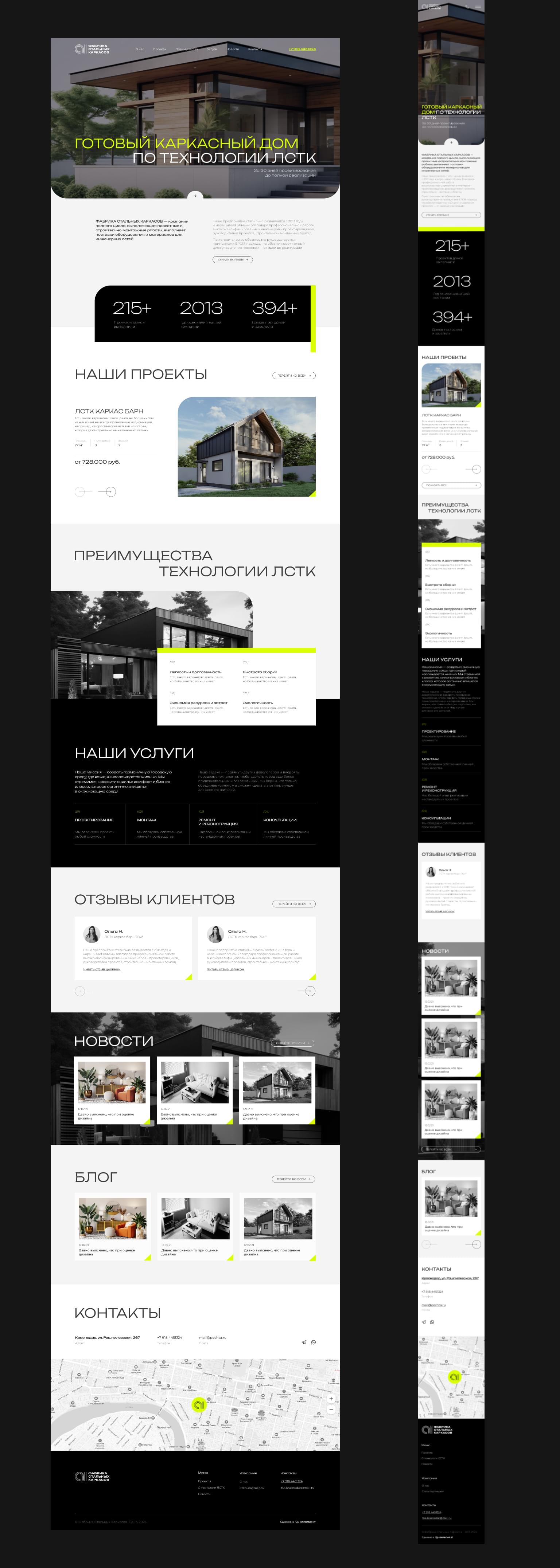 ФАБРИКА СТАЛЬНЫХ КАРКАСОВ — компания полного цикла, выполняющая проектные и строительно-монтажные работы, выполняет поставки оборудования и материалов для инженерных сетей. Задача — в очень сжатый срок подготовить дизайн-макет нового сайта компании.